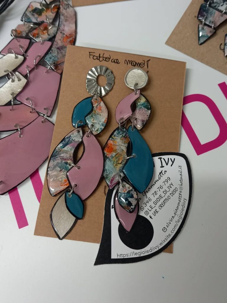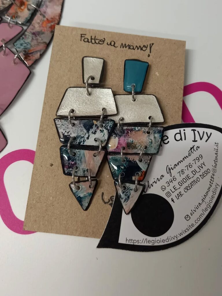 Ogni pezzo è dipinto a mano su carta, poi trasformato in resina artigianale: un processo che rende ogni creazione “irripetibile”